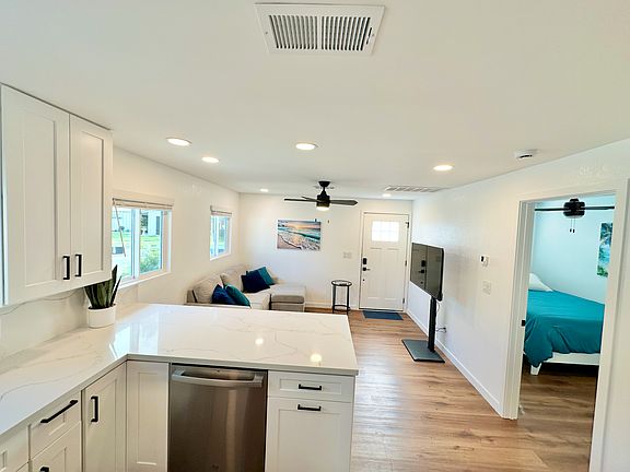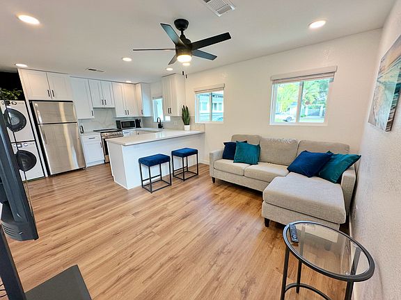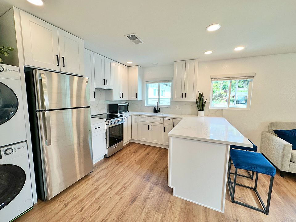 Completely private, fully furnished, brand new one bedroom apartment 10 minutes from the beach. Everything in this recently built home is brand new, including quartz countertops, stainless steel appliances (dishwasher, fridge, range), flooring, porcelain bathroom tile, bedding & electronics. The pillows come in three different variations - from soft to medium to firm. The mattress can also be made to be more firm by removing the mattress topper if you'd like. The bed size is queen. This home also comes with central heating & air conditioning, a smart thermostat & a smart lock / keyless entry. It is very close to a great bike trail & walking distance to restaurants, bars, a beautiful park & grocery stores. The neighborhood is very peaceful & serene & the apartment has a view of nearby hills. It's also walking distance to a beautiful park called Buddy Todd Park, which has ocean views. This home also comes with a private yard & washer & dryer in-unit. Free wifi and all utilities are also included. This unit can be available on a month-to-month basis, if needed/preferred. This unit has been rented & will be available again July 1, 2025. All utilities included. Month-to-month option