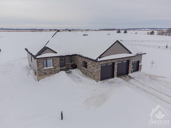 Experience luxurious living in this newly built, 3 bedroom, 2 bathroom home on a generous 0.5 acre lot. Designed with accessibility in mind, wide hallways and a wide front door make it easy to move around the house. Step inside to discover three spacious bedrooms with extra large closets, two beautiful bathrooms, and a 2.5 bay garage for all your needs. The ensuite is the height of luxury with its soaker tub and full shower stall. An open concept main level allows plenty of natural light to flood through the large windows. Enjoy an expansive sunset while you entertain guests in the sparkling kitchen, complete with quartz countertops and an inviting kitchen island. For additional space, an unfinished basement offers endless possibilities for a home gym, office space or rec room, plus full rough-in for a third bathroom. Located approx 15 minutes away from Place D'Orleans Mall, this luxurious property provides easy access to shopping & amenities. 24 hours irrevocable on offers.