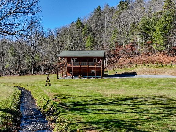 10+/- Acres Unrestricted creek front home near Queens Lake! Finished construction in 2023, this 2 bed, 3 bath home is basically NEW with low maintenance. Queens Creek runs through the property and is surrounded by a mix of pasture and woods. Enjoy year-round views of the surrounding mountains from the wrap-around porch. Inside, you'll find an open main living area with cathedral ceilings and a gas log fireplace. The kitchen showcases beautiful hickory cabinetry paired with granite countertops. Each bedroom comes with its own private bath for added convenience. Large walk in closet in the Main bedroom. The full basement with central AC/Heat adds tremendous value, providing the ability to park two cars in a tandem-style layout or convert this space to create additional living areas or guest accommodations. The lower level also features a laundry room and a full bath, enhancing functionality. 16kw Generac Full House Generator. Located just minutes from Nantahala River and nearby hiking trails, this is a rare find—don't miss out on this incredible opportunity!