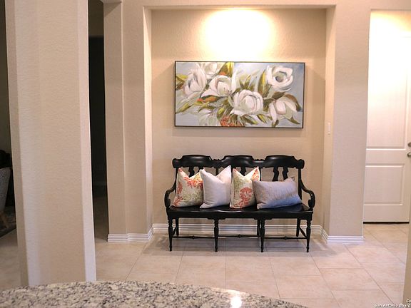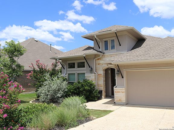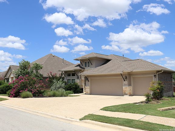 Assumable 2.75% V.A. Loan. Bring Your Picky Buyers-This One's a Standout! From the moment you drive through the gated entrance, you'll feel the difference. Lined with beautiful, nearly-new homes and lush, manicured landscaping, this Hill Country community exudes charm and warmth. Drive slowly-not just to take it all in-but because children are often out riding bikes or playing catch in the street, safely within the gates. This particular home sits on a level, well maintained lot. In the Spring and Summer the lawn is vibrant green, and the Crepe Myrtles are in full, colorful bloom-thanks to the full automatic sprinkler system that keeps everything thriving with ease. Step through the impressive 8-foot front door and you'll be greeted by soaring tray ceilings in the entryway. To your left, a formal dining room awaits-currently used as an office, but note there is ample space for a large dining table in the oversized kitchen. And speaking of the kitchen-you'll find it's a chef's dream. Outfitted with stainless steel appliances, it includes a high-tech programmable, self-cleaning oven and a sleek gas cooktop. Granite countertops and a stylish brick backsplash complete the look. The open-concept floor plan and 11-foot ceilings throughout the home create an airy, expansive feel that's perfect for entertaining or relaxing. As part of the prestigious Brookstone Collection, this home is loaded with upgrades. The primary suite is a true retreat, featuring a tray ceiling, a bay of windows with a built-in seat, and picturesque Hill Country views-you'll even catch the sunrise from here. Step into the luxurious en suite bathroom and prepare to be wowed: separate his-and-hers vanities, a garden tub, and the shower of your dreams. You'll want to try it out immediately-but save that for after closing! And thanks to the tankless Rinnai water heater, you'll never run out of hot water-ever. There's so much more to see, but why read about it when you can experience it for yourself? Come take a tour. This home truly has it all. Please look for the virtual tour above. You won't want to miss that!