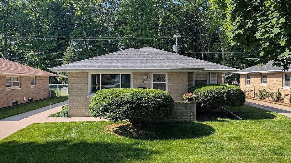 Charming 3 bedroom Mid-century modern brick ranch bordering Greene Park close to Lake Michigan! The main level features a spacious living room w/crown molding, nice sized master, vinyl double hung Low-E windows throughout, HWFs, new LVP flooring in the kitchen, hallway and bedroom along w/retro pink bathroom. Lower level/basement (renovated 2015) boasts large rec room/studio/theatre, laundry/pantry room, storage spaces, and toilet. The beautiful private back yard w/patio provides a scenic wooded view of the park ideal for entertaining or relaxing plus a 2.5 car brick garage.