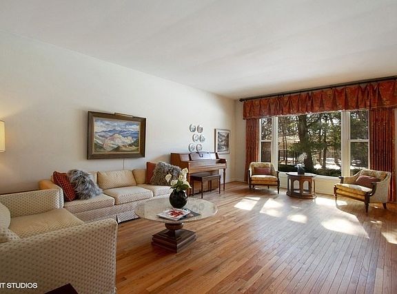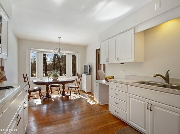Lots of light in this expansive & updated ranch home on .35 acre wooded lot with beautiful hardwood floors & good sized bedrooms. Lovely fenced backyard with paver patio & mature trees. Top rated districts 225 & 31. Stylish white cook's kitchen with newer stainless steel appliances, eating area with south facing bay window, plenty of counter space + walk-in pantry closet. Large foyer to great guests. Family room with wood burning fireplace and built-ins has sliding doors to the outside patio. A sun-drenched dining room opens to the large living room. Master suite with double sink and walk-in shower. Hall full bath with shower/ tub serve the other 3 bedrooms. Each bedroom offers double closets. Laundry room off the family room as you enter from the garage. Unfinished basement offers extra living potential or wonderful storage. Updated windows, 2012 furnace, attached garage and more in this well maintained home. Convenient location minutes to Willow Rd, 294 & commuter train.