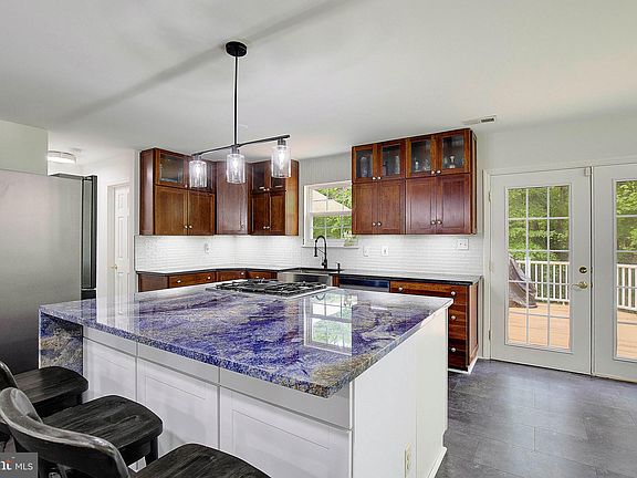 HUGE home with approx 4,600 +/- SF with tons of PRIVACY on over 3 acres! No HOA here, so bring your chickens if you'd like! Home has been beautifully updated throughout with top-of-the line, custom finishes! ALL NEW kitchen upgrades include an extra-large center island with Azul Bahia granite countertop with a waterfall! The base cabinets have 'Brilliant Black' granite countertops with a beautiful glass mosaic backsplash. New hi-tech Samsung stainless steel appliances include a 29 cu ft Bespoke 4-Door Flex French Door refrigerator with WiFi - navy glass. Also has a smart Bespoke Linear Wash 39dba dishwasher in navy stainless steel and an InSinkErator. A Krause farmhouse stainless steel apron sink and multifunctional faucet add to the kitchen's one-of-a-kind look! New, contemporary luxury vinyl plank (LVP) flooring throughout the main level is waterproof and scratch proof for good looks but easy maintenance! Freshly painted throughout the main level. You'll love the wood burning stove and brick fireplace that warms the whole home during cold winters. Upper level boasts an enormous primary bedroom with a custom-built double wardrobe! Ensuite bathroom is completely remodeled too with new ceramic tile flooring, a double marble vanity, freestanding soaking tub, and an oversized floor-to-ceiling tiled shower. Second full bathroom upstairs updated with new oversized marble vanity, fresh paint, new flooring, new lighting and new floor-to-ceiling tiled shower with custom glass enclosure. Has hardwood floors on the upper level. A new laundry room on the second floor has built-in storage and brand new front load LG Wash Tower with Centre Control 5.2 cu ft washer and LG 7.4 cu ft electric dryer! Fully finished basement has new flooring and a great open space for entertaining friends and family! 2-car oversized garage and a separate large workshop area offering even more storage space. Oversized deck with composite and vinyl construction overlooks the private, wooded setting that gives seclusion and a beautiful natural setting! This home has been extremely well maintained, including brand new 2-unit Energy Efficient Smart HVAC (has 12 year warranty) with whole house filter for both HVAC units installed in October 2022. Owners added additional air vents and returns to second level for maximum efficiency. Located in a fantastic school district, close to shopping, hospital, restaurants, and still an easy commute to DC and JBA.