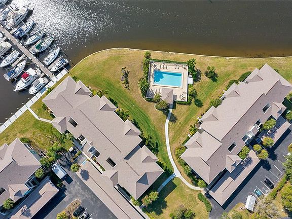Waterfront Marina living at its best. Sit on your lanai looking over boats docked in the North Basin of Burnt Store Marina, the largest deep-water marina in Southwest Florida. You will probably see manatees, fish and maybe a dolphin. If you are a boater you are minutes from Charlotte Harbor, no bridges so bring your sailboat and power boat. This ground floor unit lets you walk directly into your home from your carport. The 2 bed/2 bath unit has a split floor plan so privacy for you and your guests. Entertain in your great room or sit on your lanai enjoying sunsets on the water. Your master bedroom has a private door to the lanai and a walk-in closet. The tiled master bath has dual sinks, and an updated shower. Burnt Store Marina offers security as a gated community, a fitness center, including tennis and pickleball, 3 9-hole golf courses and 2 on-site restaurants You are a short drive to the Punta Gorda airport, Fort Myers international airport and shopping and medical facilities. Make your appointment today to see this beautiful condo.