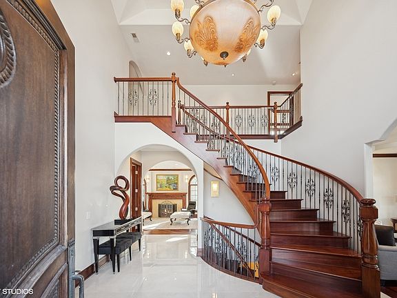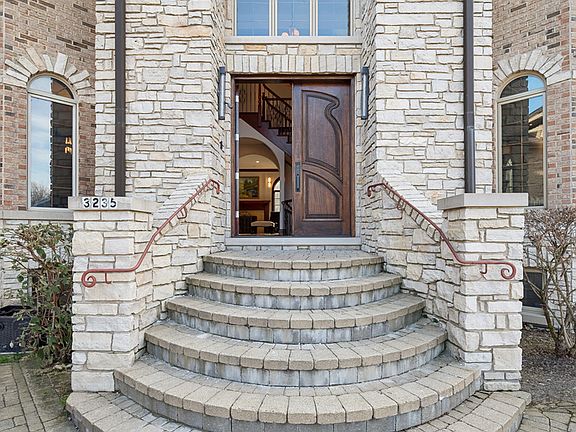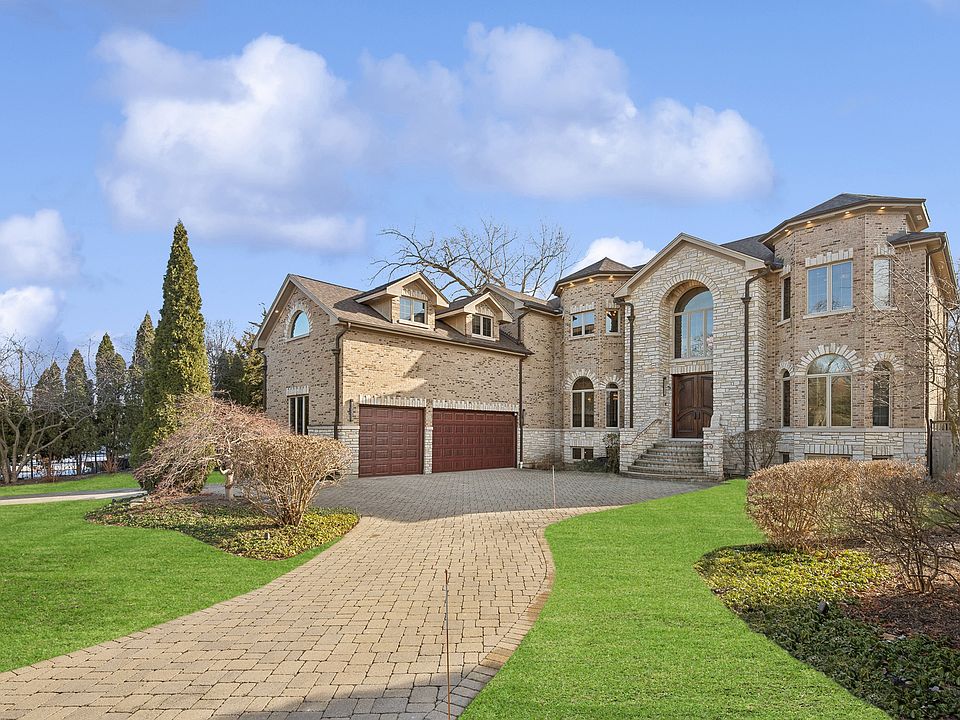 Welcome to this elegant brick and stone residence with exceptional craftsmanship. Upon entering, you're greeted by a magnificent two-story foyer featuring open staircases that lead to both the second floor and the finished lower level. The grand entryway is adorned with a new stone-tiled floor, two guest closets, and an imported chandelier. The home boasts Brazilian cherry hardwood floors, intricate moldings, a tray ceiling with recessed accent lighting, and Palladian windows, 10 foot ceilings, creating a sophisticated ambiance perfect for entertaining. The dining room is equally impressive, featuring large mahogany moldings, a chandelier, modern wall sconces, and a butler's pantry to accommodate any dining occasion. The new powder room features Italian cabinetry and sink with a contemporary chandelier. The family room is a masterpiece of design, with rich moldings, a fireplace, and Palladian windows with tremendous sunlight. Nestled in between the family room and study is a beautifully crafted wet bar. French doors open to both the kitchen and the study, which is accented by magnificent cabinetry and decorative columns. The kitchen is a culinary dream, featuring detailed cabinetry, granite countertops, a tumbled marble backsplash, and a center island with a fireplace. Top-of-the-line appliances include a six-burner Thermador range top with a pot filler faucet, separate Subzero refrigerator and freezer, Miele dishwasher, and Wolf double oven with warming drawer. The space is completed by a pantry, a large eating area, and doors leading to a brick patio with a gas fire pit and landscaped yard with new lighting and mature, abundant trees. The adjoining mudroom offers an enclosed washer and dryer, granite countertops, a stainless steel sink, and ample closet space, with access to the three-car heated garage with EV charging station. Upstairs, discover three spacious bedrooms and a luxurious primary suite featuring an intricate tray ceiling, fireplace, sitting area, and French doors. The master bath is a spa-like retreat with a Neptune Jacuzzi tub, a two-person steam shower with multiple body sprays, and a large vanity with granite countertops. Do not miss the expansive private dressing room and an an extra large master closest complete with built-in custom cabinetry. The lower level is designed for entertainment and relaxation, featuring a stone floor with a patterned design, a stone fireplace, and a full wet bar. Additionally, a fifth bedroom on this level can function as a nanny's room or guest room, with a conveniently located full bath, a full exercise room and a separate office. Lastly, enjoy peace of mind with a new roof that enhances both the durability and curb appeal of this stunning home. This home is a true masterpiece, offering luxurious living spaces and exquisite details throughout. Welcome home!