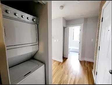 This elegant 2nd-floor unit, featuring exposed brick in the living room, presents a modern and sophisticated living space. Offering 2 spacious bedrooms, 2 full baths, and the convenience of in-unit laundry, this beautifully rehabbed property exudes a clean and bright ambiance. The east and west views flood the unit with natural light, highlighting the gleaming hardwood floors throughout.