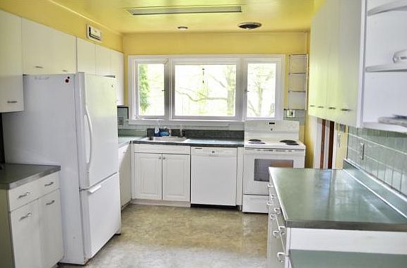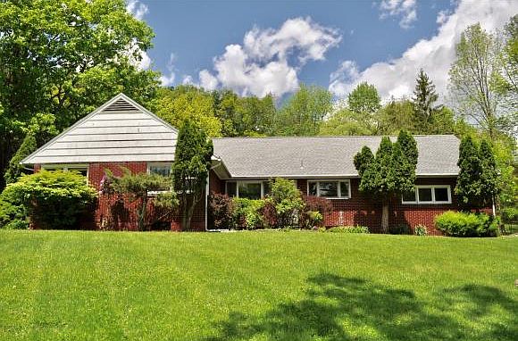 This Midcentury brick ranch, essentially unaltered, pays homage to architects of this artistic time period. The aesthetics of the grand Living Room with large glass windows embodies an "Outside-In" sense of space with a focal point flagstone fireplace. The floor plan enables views of the calm landscape. Vintage retro magic is depicted in the brilliant use of color in the baths. A must see!