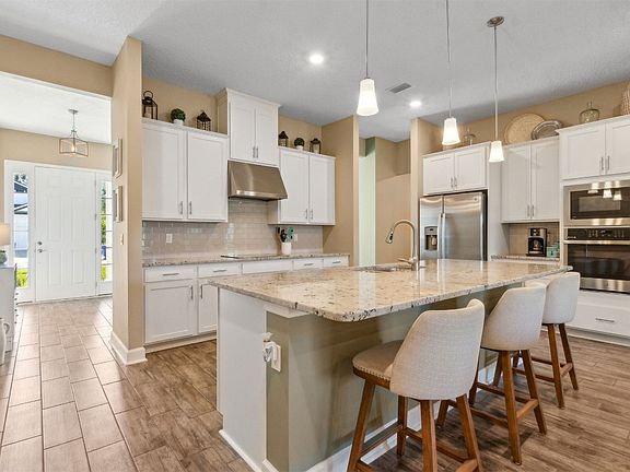 Enjoy beautiful lake views from this waterfront home situated on a desirable corner lot in Fernandina Beach. This meticulously upgraded 3-bedroom, 2-bath home with a dedicated office offers 2,263 square feet of thoughtfully designed living space. Built in 2022, the home features a gourmet kitchen complete with granite countertops, white cabinetry, soft-close drawers, and a custom butler's pantry perfect for entertaining. The spacious gathering room is enhanced by a tray ceiling and triple sliding glass doors that bring the outdoors in, opening to a covered, screened-in paver patio with tranquil lake views. The primary suite is a true retreat, featuring a spa-like bathroom with a double vanity, soaking tub, walk-in glass surround shower with stylish floor tile, and upgraded cabinetry. Bathrooms are finished with sleek quartz countertops. Plank tile flooring extends across the entire home, offering both beauty and durability. The perfect-sized fenced-in yard is ideal for playing catch with the little ones or letting your furry friend roam safely. Additional features include a 3-car garage with attic stairs and flooring for ample storage.