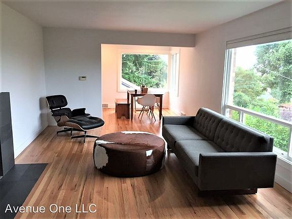 Queen Anne Home - Available May 5th! Chic Mid-century modern home on the west slope of Queen Anne with territorial, mountain and Sound views! Light and bright living room features beautiful hardwood flooring and wood burning fireplace. Updated kitchen with stainless appliances, stone counters and gas range. Two bedrooms, one bath up. The lower level has a large open family room with cozy fireplace, additional bedroom and full bath, plus laundry. Fully fenced private yard! One off street parking space off the alley. Fantastic location with quick access to downtown, South Lake Union, Ballard, Fremont and freeways. Close to great schools, parks, shopping, and Interbay Golf Course. One dog welcome with additional pet deposit. Sorry no smoking. To schedule a viewing please contact Karin Loen, Avenue One Residential, Seattle, WA at 206-302-9955 or karin@avenueoneresidential.com. (RLNE3182233)