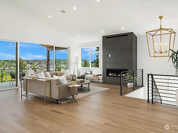 Unique modern new construction with impeccable attention to detail. Upper floor has an inviting open concept designed to maximize the view. Featuring georgeous hardwood floors, European kitchen cabinets, gas fireplace, & dining area that flows to a large covered 523sf patio with a 2nd gas fireplace & space for gas BBQ...year-round use. Main level features 2 bedrooms and generous master suite with territorial views. Lower level features main laundry room & permitted attached dwelling unit with 2 bedrooms, 2 full bathrooms, complete kitchen, & 2nd laundry. Builtin speakers on upper floor & patio. Lots of natural light. Minisplit heat A/C. Brilliant Smart Home system & fiber optic cable. 400sf 2car garage with additional driveway parking.