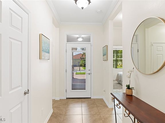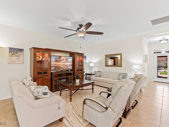 MOVE-IN READY!! This EXCITING new listing is being sold FURNISHED and is AVAILABLE NOW! Pride of Ownership Shows inside and out with an expanded driveway, additional paver patio out front, and crown trim throughout. For your peace of mind, WINDOWS AND FRONT DOOR HAVE BEEN UPGRADED TO IMPACT RESISTANT, the lanai has ELECTRIC HURRICANE RATED ROLL-DOWN SHUTTERS & 1 ACCORDION SHUTTER FOR FULL PROTECTION. For added cooling/heating efficiency, ADDITIONAL INSULATION was added, including over the garage and lanai areas. AC new in 2023 and UV Light and Cleaning Systems added in 2025. The kitchen offers a new disposal, decorative island trim and backsplash, wood cabinetry with crown trim, granite countertops, and stainless appliances. The dining area has great light and views of the extra deep backyard and landscaping. The primary suite is spacious, and the primary bath has been updated with NEW SHOWER TILE AND GLASS ENCLOSURE. The laundry room has built-in cabinetry/sink. Interior has been painted with fresh, neutral colors. The exterior was painted in 2024 and a full house gutter system added. The garage is wired for a generator. Cascades at River Hall is a great 55+ community offering an exciting Florida lifestyle with full amenities. The recreation center has a gorgeous pool, spa, game and event rooms with kitchen, outdoor grilling area, pickle ball, tennis courts, bocce ball, an exercise room and more! The Cascades is close to I75, the airport, hospitals, great shopping, dining, and our terrific Downtown River District with Art and Music Fests!