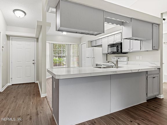 Price reduction on this charmer! Updated home away from the hustle and bustle of Orange park, but still close to all the conveniences. This cute home is perfectly laid out to optimize space and features quartz counter tops in the kitchen, updated light fixtures and ceiling fans. Newer luxury plank tile flooring throughout the home. Open concept living area with the living room opening to the screened lanai. Enjoy the large private backyard surrounded by trees and hear the birds singing while enjoying morning coffee. The kitchen is open with a breakfast making it nice and roomy. Split bedroom plan with the primary bedroom offering privacy if needed. Two car garage is roomy with shelving, washer/dryer hook-ups are in the garage.