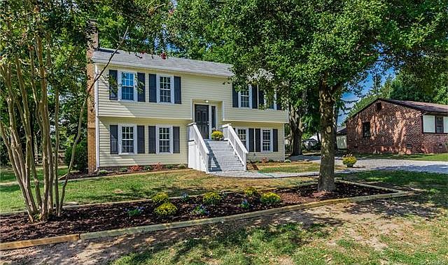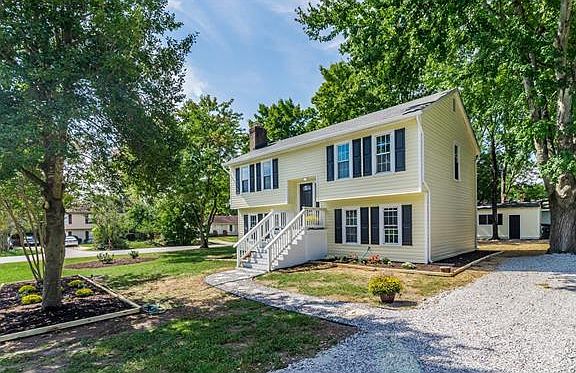 Beautifully Remodeled 2 Story Split Foyer. Featuring 1686 Sq Ft. 4 BR 2 Bath's on a large corner lot. This beauty is move in ready. It features beautiful dark hardwood floors on the 1st and 2nd floor, spacious double vanity bathroom, newly carpeted bedrooms with large closets, carpeted family room with a wood burning fireplace, freshly seeded large rear yard with a spacious deck great for entertaining, Central Air with 2 zone Heat Pump, new stove and dishwasher in the updated kitchen with marble counter tops, wainscoting in the kitchen, new gutters, ceramic tile flooring in the over sized laundry room, beautiful landscaped yard, freshly mulched flower beds. Many beautiful features in this gorgeous home.