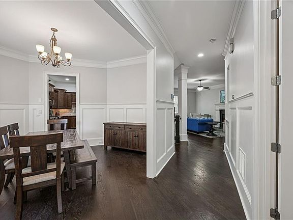 Lovely home with bright open spaces! An inviting front porch welcomes you inside to gorgeous hardwood floors throughout the main living areas. A bright office to the right, and a formal dining room with crown molding to the left. The spacious living room is filled with natural light and features built-ins and a cozy fireplace, flowing seamlessly into the informal dining area with private backyard views. The kitchen is perfect for entertaining, featuring a breakfast bar, granite countertops, stainless steel appliances including a double oven, and a stylish tile backsplash. A convenient half bath completes the main level. Upstairs, retreat to the oversized primary suite with a tray ceiling, spa-like bath with dual granite vanities, a pedestal soaking tub, and a fully tiled walk-in shower. A huge walk-in closet provides plenty of storage. Three spacious secondary bedrooms include a Jack-and-Jill bath shared by two, plus a private en-suite in the third. The upstairs laundry room adds everyday convenience. The finished basement with new carpet offers a large gathering area—perfect for a media room, man cave, craft space, or playroom—plus a bedroom, full bath, and a wet bar ready for movie nights. Unfinished spaces offer additional possibilities. Fantastic location just a stone’s throw from the Lynwood Recreation Center with pool, tennis, soccer fields, playground, parks, gazebo, and more, while also just minutes to Downtown, Truist Park, and major conveniences. Book your tour today!
