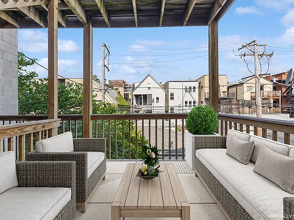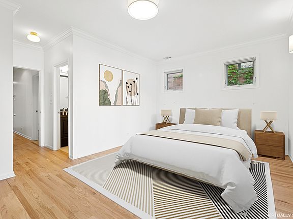Beautifully renovated 2 bedroom, 2 bathroom simplex on a charming one-way, tree-lined street in Lakeview. This move-in ready home features a fully updated kitchen with white quartz countertops, decorative backsplash, refinished cabinetry, new champagne gold hardware and fixtures, deep undermount stainless steel sink with custom accessories, and new garbage disposal. The bright, east-facing living room is filled with natural light and offers crown molding and a gas log/wood-burning fireplace with a decorative surround. Refinished hardwood floors throughout, including newly added hardwood in both bedrooms. Additional upgrades include all-new LED recessed and decorative lighting, in-unit laundry, and a hard-wired sound system throughout. The spacious primary suite features a walk-in closet and an en suite bath with dual sinks and a jacuzzi tub. The generously sized second bedroom includes ample closet space and easy access to a full bathroom with walk-in shower. Enjoy private outdoor space with a west-facing deck plus a beautifully landscaped common backyard. Ample storage throughout, including a pantry closet and large private storage room in the lower level. One garage parking space and additional storage included in price. Unbeatable location close to Southport Corridor, Wrigleyville, Belmont Red/Brown Lines, the lakefront, shops, restaurants, and more!