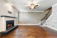 Fenced backyardExposed brick accentsRich hardwood floorsCustom doorsMassive islandRustic wood-beamed ceilingsShiplap walls