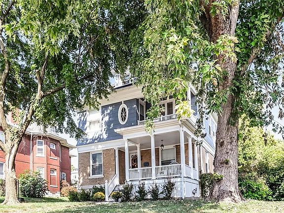 Welcome to this WELL CARED for historic home built in 1890 in the coveted Scarritt Renaissance! This stunning residence, formally known as the Melrose Methodist Church Parsonage, boasts a PRIVATE DRIVEWAY with AMPLE parking for homeowners and guests!!! Step into the foyer, leading to the elegant GRAND entryway with tall ceilings, fireplace with detailed mantle and original crystal chandelier made in Spain in 1885! Charming extra room on main level, originally used as a parlor, can be used as a bedroom, library, sitting room and more. Full bathroom with built-ins for extra storage on main level! Gorgeous formal living room with exquisite fireplace connects to the luxurious formal dining room through the huge wooden pocket door. So much attention to detail in this home with large crown molding, millwork and rich hardwoods throughout. Eat-in kitchen with lots of cabinet space and pantry connects to large mud room. Second level boasts spacious primary bedroom with fireplace and french doors to walkout balcony, two more large bedrooms, HUGE laundry room with additional balcony, full bath with double vanities and new carpet! Pay attention to the CUSTOM details including leaded glass transoms above doorways and window seating with lots of natural light! Third floor may be utilized as 2 more bedrooms or a HUGE bonus area. Newer roof, gutters, leaf guards and asphalt drive! Two hot water heaters run in tandem. Dual zoned HVAC! Outdoor space includes a fenced, private backyard and front porch great for a morning cup of coffee! Walk to the renovated KC Museum (Corinthian Hall) or stroll Kessler Park enjoying walking trails, disc golf and playgrounds! Just minutes from shopping, dining, downtown and the City Market. So much history and class in this one of a kind home! Don't miss out!