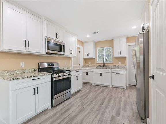 Renovated home offering an open layout with fresh paint, new flooring and recessed lighting. Updated kitchen with white cabinets, stainless steel appliances, and gas range. Spacious living and dining area, refreshed interior throughout, and inviting front porch. Large lot with plenty of outdoor space and parking. Move-in ready and conveniently located near main roads, schools, and shopping.