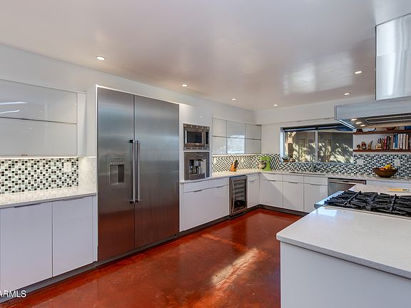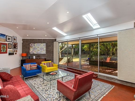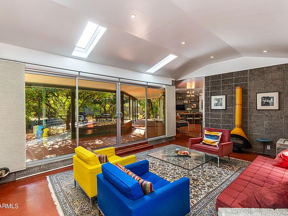 Discover this stunning 3 bed, 2,5 bath Mid-Century Modern home, perfectly situated in one of Arcadia Lite's premier locations. Set on nearly half an acre—a rare find in this coveted neighborhood. Vaulted ceilings and skylights flood the space with natural light, enhancing the open-concept living and dining areas. The thoughtfully designed modern kitchen features sleek cabinetry, premium appliances, and seamless flow into the dining space. Originally a three-bedroom, the flexible layout allows for the addition of a fourth bedroom or expanded primary suite. A huge private backyard with fruit trees offers endless possibilities to create your own oasis. Walk to Chop Shop, LGO, and Postino—some of Phoenix's best dining. Biltmore Fashion Park is just minutes away.