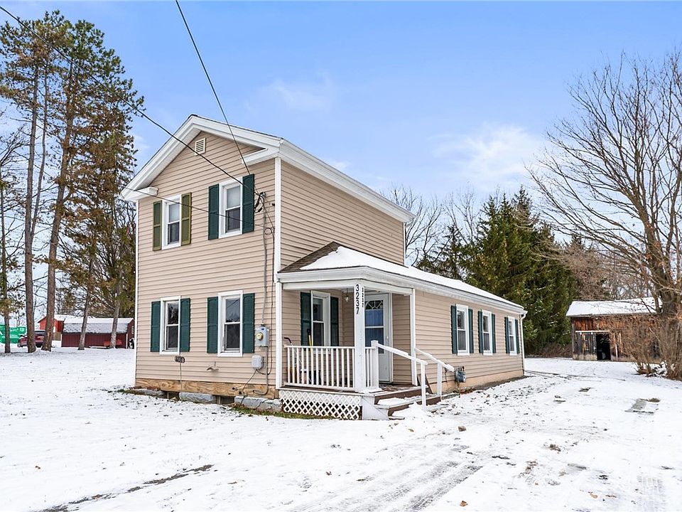 Opportunity awaits at this cozy Fowlerville Rd home sitting on .54 acres and featuring 3 bedrooms, 1 bathroom, 1,092 square feet and a classic barn/outbuilding in the backyard. The covered front porch leads you into the first floor w/ two bedrooms, a spacious living room and updated windows throughout. The large, eat-in kitchen has plenty of room to operate and arrange your custom kitchen setup w/ ample counter, cabinet and table space. The upstairs has a potential bonus room/office. The lot is approximately 436 feet deep, has a historic-age barn on a foundation in the backyard and is partially wooded in the way back. Updated roof (2019), furnace, electric panel, plumbing, windows and vinyl sided exterior. Centrally located to Avon, Caledonia, York, Geneseo, Henrietta and more.