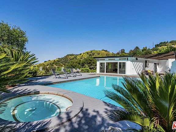 Tucked into the coveted Longridge Estates, a private driveway will lead you to this fully furnished and renovated 3 bedroom home. As you enter the natural light filled living room, you're greeted with breathtaking canyon and city views, available to see throughout this home's open layout or, from your very own pool and spa duo. Need more? This newly renovated home has over 2,000 sqft of living space with updates including built-in speakers, Carrera quartz countertops, new stainless steel appliances, and new sleek modern cabinets creating the perfect entertainer's setting. The primary room includes an en-suite bathroom with double sinks, customizable walk-in closet, and it's own sliding door access. Each bathroom is newly renovated with LED mirrors and modern finishes. The outdoor has unparalleled views and exquisite privacy, surrounded by drought tolerant landscaping, and a built in gas BBQ to enjoy your summer nights under a newly constructed pergola. Direct access 2-car garage, central heat and air conditioning, situated on over a half acre lot. This is truly a unique property!