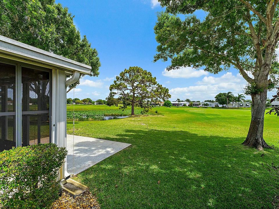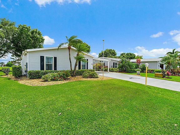 Savanna Club 55+ community~Soak up the sunrises, sunsets and privacy in quiet cul-de-sac lot that fronts the golf course and nature preserve. Home features 2 spacious BR's, 2 BA's, + an office/den or 3rd bedroom in a desirable split plan layout. Home is move in ready with updates that include newer wood cabinetry kitchen with soft close doors and drawers, granite counter tops, stone backsplash accents, 12/2024 Stainless Steel appliances, wood lam. flooring, 2020 roof, 12/2023 A/C, new lighting fixtures, modernized faucets, all new electrical outlet upgrades and an enclosed lanai for year round enjoyment. Home is fully equipped with accordion shutters, a decor drive for ease in maintenance and a cost saver irrigation well. All measurements are approximate, buyer to verify. Land Lease