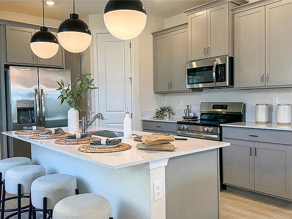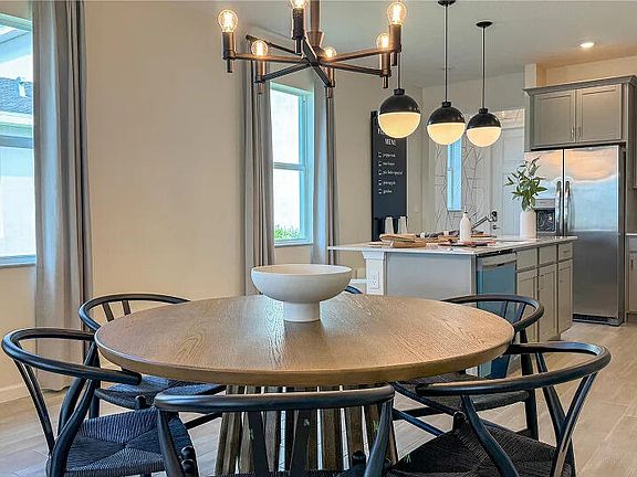 This new single-story home features a smart layout that prioritizes ease of living. Down the foyer is an open-plan design shared by the kitchen with a center island, dining room and family room, which extends out to the covered lanai. On the opposite side of the home are all three bedrooms to provide a restful retreat, including the owner's suite with an attached bathroom. At the front is a versatile two-car garage.Prices, dimensions and features may vary and are subject to change. Photos are for illustrative purposes only.