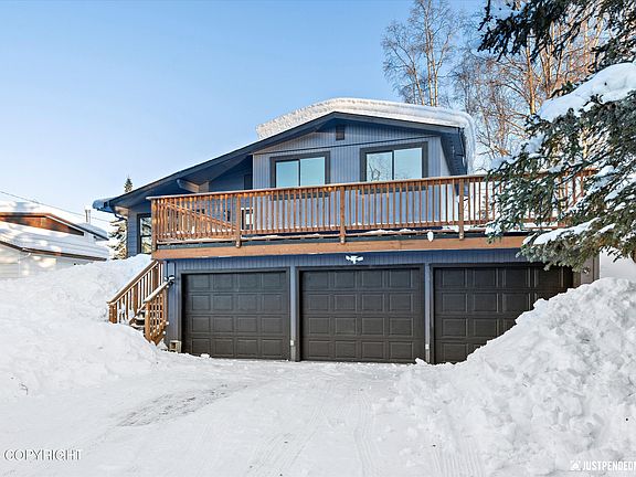Step into modern elegance with this freshly renovated multi-level home in East Anch. Boasting an inviting atmosphere, the bright, open layout fills the space with natural light, creating a warm and welcoming ambiance.The contemporary design features provide a chic living space that suits both daily living and entertaining. Picture-perfect city and mountain views from the living and dining room.The massive deck above the garage is an outdoor-entertainer's dream. Garage is not heated. Bid attached under docs. Garage door motors to be installed