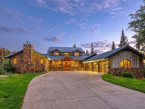 Strawberry Highlands is a one-of-one luxury estate nestled in the highly sought-after Strawberry Park, just under 2 miles from downtown Steamboat. Spanning 18.54 private acres with Butcherknife Creek running through it, this 9,024 sq ft estate is an outdoor enthusiast’s dream and the perfect year-round escape. Extensively renovated by Gerber Berend, the residence features 6+ bedrooms and 5.5 bathrooms with a thoughtful floor plan, including a main-level primary suite complete with a fireplace and private deck. At the heart of the home is a stunning Ullr Designs gourmet kitchen with professional-grade appliances, flowing seamlessly into a spacious great room that opens to a beautiful backyard with rock features. Enjoy sweeping views of Howelsen Hill, Emerald Mountain, and Strawberry Park from the patio, which features a brand-new hot tub and firepit. The lower level boasts a large recreation room with a billiards table, wet bar, cork-floored gym, office, and two additional bedrooms. A deep 3-car garage accommodates large vehicles with ease. The newly finished barn offers exceptional guest or entertainment space with a full bathroom, mudroom, washer/dryer, and elevated deck access. Below, oversized garage doors, workshop, and abundant storage space connect to a versatile sports court—used for pickleball in the summer and ice skating in the winter. Outdoor amenities abound, including a professionally built 2.5+ mile private trail system for hiking, biking, or horseback riding, climbing 300 feet to a panoramic rock outcropping with some of Steamboat's best views. Wildlife is a regular part of the experience here—watch moose, elk and foxes roam the property. Whether you're enjoying backcountry skiing, sledding and pow surfing in the winter or paddleboarding on the private pond, pickleball, frisbee golf and cookouts in the summer, Strawberry Highlands delivers unmatched lifestyle and recreation on one of the most coveted properties in the Yampa Valley.