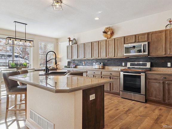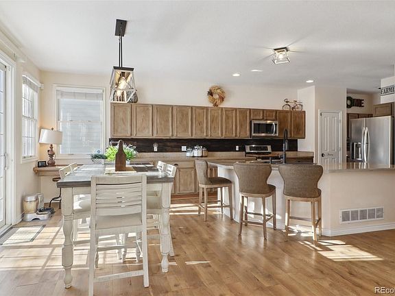 Nestled in the coveted Suncatcher neighborhood of The Meadows, this stunning 4-bedroom, 3-bathroom home offers the perfect blend of tranquility, luxury, and functionality. Boasting 3,488 square feet of light-filled living space, this home backs to peaceful open space, creating a private oasis you’ll love coming home to. Inside you’re greeted by a bright and inviting family room, kitchen, and nook area, all flooded with natural light. The kitchen, truly the heart of the home, is stunning with gorgeous cabinets, (LVP) flooring, and a spacious layout perfect for entertaining. A convenient butler’s pantry connects the kitchen to the elegant dining room, adding a touch of sophistication. Upstairs, the serene primary suite features French doors opening to a private mini terrace and a five-piece en suite bathroom. Each bedroom is light and bright, offering walk-in closets and ample space for relaxation. Outside, enjoy Colorado’s 300 days of sunshine in the gorgeous gazebo, ideal for outdoor living and entertaining. Additional highlights include Pella windows, a whole-house humidifier, a newer hot water heater, a radon mitigation system, a sprinkler system, and a finished garage. Conveniently located near parks, trails, and all the amenities of The Meadows, this home is the perfect retreat for those seeking both comfort and convenience. Schedule your showing today—this gem won’t last long!