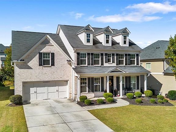 Perfectly positioned in the heart of Buford, this traditional two-story home blends timeless charm, modern comforts, and an unbeatable location. Enjoy close proximity to TOP-RATED SCHOOLS, as well as endless options for shopping, dining, and year-round entertainment. Spend weekends at Bogan Park, on nearby golf courses, or take a short drive to Lake Lanier for boating, fishing, and outdoor adventures. The community amenities enhance your lifestyle with an Olympic-style pool featuring a shallow area for little swimmers, tennis and pickleball courts, and an outdoor fireplace, perfect for relaxing or gathering with neighbors. The home’s brick front, distinct dormers, and covered rocking chair porch with classic columns create desirable curb appeal. Step through the NEW STEEL FRONT DOOR into an inviting foyer flanked by a formal sitting room or home office and a dining room with craftsman-style trim. A BUTLER'S PANTRY with beverage cooler connects the dining room to the open-concept great room, featuring a floor-to-ceiling ship-lap fireplace with custom built-ins, coffered ceiling, and ample space for entertaining. The eat-in kitchen is both stylish and functional with a center island and breakfast bar, HIGH-END APPLIANCES, stainless range hood, pot filler, subway tile backsplash, granite countertops, and a comfortable dining nook. Updated lighting throughout the main level adds warmth and character to every space. Off the garage, the mudroom serves as a practical drop zone for daily living. A MAIN LEVEL BEDROOM and full bath with a ship-lap accent wall offer an inviting space for guests or multi-generational living. Upstairs, a spacious landing leads to the OVERSIZED PRIMARY SUITE, highlighted by a tray ceiling, double vanity, walk-in shower with two shower heads, garden tub, and dual closets. Two additional bedrooms, a full bath, and a convenient upstairs laundry room provide comfort and convenience. The BONUS ROOM, currently serving as a media room, comes complete with custom lighting and a FULL MEDIA SYSTEM for movie nights or game days. Additional features include barn doors, plantation shutters, hardwood flooring, and new soft-close toilets in all bathrooms for thoughtful touches that elevate the home’s overall design and livability. Step outside to a spacious EXTENDED PATIO overlooking the LEVEL BACKYARD, ready to be customized into an outdoor area you love. Whether you envision a cozy fire pit, lounge area, or space to dine under the stars, this property offers the perfect layout for enjoying every season.