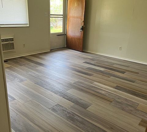 ALL NEW This unit is in a ranch-style building - no steps or no one above or below you. There is brand new vinyl plank flooring in the kitchen, living room, hallway and bathroom. Both bedrooms have brand new carpet- new backsplash in kitchen- new medicine cabinet in bathroom - all new blinds- all new paint- tub has been refinished. There is a washer/dryer hook-up, a patio in the back and private parking. I pay water and trash. No pets in this unit-prefer a non-smoker.