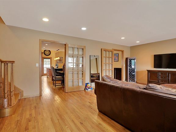 Oversized Split level home with open concept gorgeous updated Chef's Kitchen, Dining Room and cathedral ceilings in large family room housing a beautiful wood burning fireplace and boasts sunlight through floor to ceiling windows. There is a Formal Living room, laundry and large powder room also all on the first floor. The second floor has 2 large bedroom with a full bath, and the top floor has a master suite with ensuite bath, walk in closets, another large 3rd bedroom and plenty of storage. There is a partially finished basement for more storage, if needed. This house is perfect for a growing family as there is room for everyone! Flood Ins $3465-