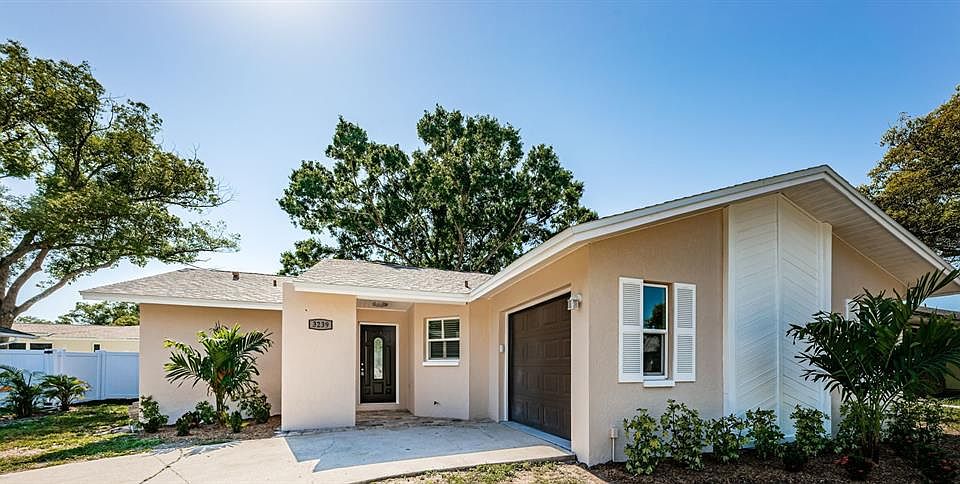 Get ready to be impressed by this impeccably renovated home located in a tranquil Palm Harbor neighborhood. This stunning ranch boasts a split-plan layout and has been completely remodeled with top-of-the-line finishes and craftsmanship. As you step inside, you'll be welcomed by a bright and roomy living area, complete with modern finishes. The open-plan design ensures that hosting gatherings is effortless. The chef's kitchen is equipped with new GE stainless steel appliances, custom cabinetry, and a generously sized island, making meal preparation a breeze. The home boasts a split bedroom floor plan for privacy, with a large primary suite featuring a luxurious ensuite bathroom and walk-in closet. As you step out of the brand-new collapsible sliding glass door, you will be greeted by a fully fenced backyard. The backyard comes equipped with a new, spacious patio, perfect for hosting summer barbecues or enjoying a glass of wine under the stars. The attached garage features a top-of-the-line garage door opener and provides ample space for parking, laundry, and storage. The property has been renovated with great attention to detail. The beautiful landscaping, new roof, and new windows give it a fresh look. The premium luxury vinyl flooring, gorgeous quartz counters, tile surround in baths, new appliances/fixtures, and lighting are just a few of the many upgrades that have been made. Enjoy the perfect balance of tranquility and city convenience just minutes away from shopping, dining, entertainment, and just a short drive to world-class beaches. Don't hesitate to schedule a private viewing and call this place home! Agent has equity.