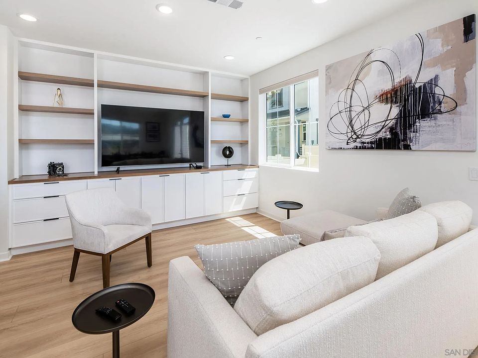 Corner unitMotorized window coveringsCustom entertainment media wallNeighboring open spaceOwned solar panelsOpen floor planSs ge appliances