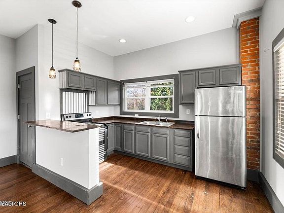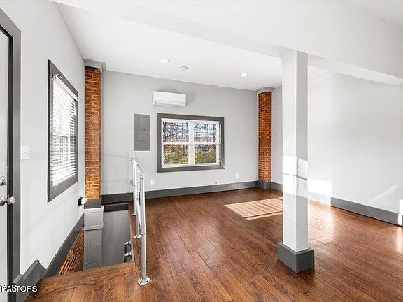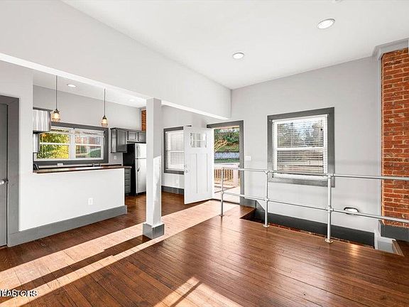 Why pay rent when you can own? This one bedroom, one full bath, and one-half bath home is located within walking distance of the downtown area of Etowah. You will love the industrial style interior as it features architectural details such as the use of brick, metals, and wood. Enter the front door to find a living and dining area with a tasteful color scheme, hardwood flooring, stainless appliances, eating bar, and a half bath. Walk down the stairs to the basement area where you will find an original brick wall in the open space used as a bedroom suite. A full bathroom is included in the bedroom/basement suite along with an over/under washer and dryer. A 6' double glass exterior door allows lots of natural light. Located in the heart of Etowah, TN, also known as the ''gateway