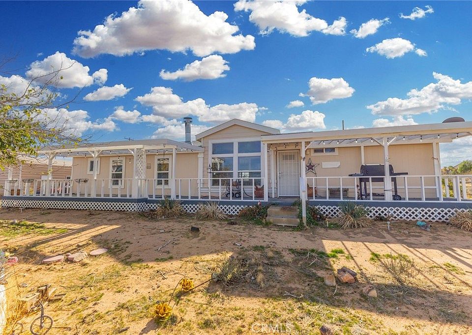 Set on more than two acres in Landers, this 3-bed, 2-bath home offers room to spread out and a layout that feels easy to live in. A wide wooden front porch with a trellis for soft shade leads you inside, where a cathedral-ceiling living room gives the space an open, airy feel. Paned-glass French doors open to a bonus room—great as a studio, playroom, office, or whatever extra space you’ve been needing. The kitchen blends a breakfast bar with a dedicated dining area, and the bedrooms are arranged with privacy in mind. The primary suite sits just off the living room and includes a walk-in closet and a spacious bathroom with both a spa tub and a separate shower. The two additional bedrooms are on the opposite side of the home, each with overhead storage above the closets and nearby access to the second bath. Outside, there’s plenty of usable land plus a mix of practical extras: a two-car garage or lockable storage structure, a shed, and a storage container—ideal for tools, gear, or project space. With its wide-open setting, great natural light, and a layout that invites both quiet living and creativity, this property gives you room to make it genuinely your own. Broker and agents do not represent or guarantee the accuracy of the square footage, income, expenses, condition, development potential, bedroom/ bathroom count, lot size or lot lines, dimensions, permitted or non-permitted spaces, or school eligibility. Buyer is advised to independently verify the accuracy of all information with appropriate professionals. There are no warranties or guarantees, buyer to rely solely on his/her/their own findings.