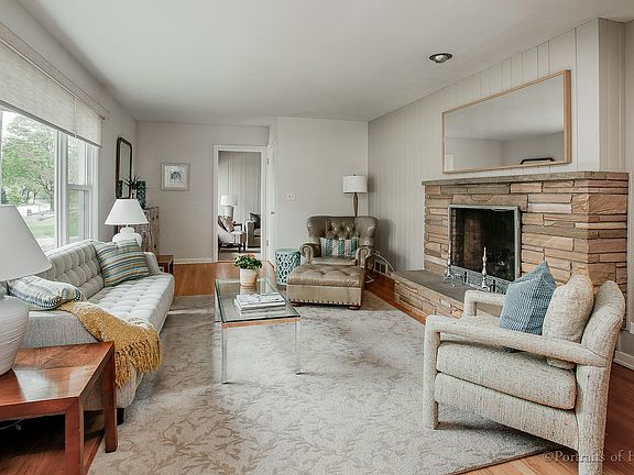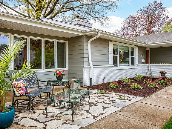 This beautifully updated mid century modern ranch has 3 bedrooms up, 2.1 baths, separate living and dining rooms, 2 fireplaces, a lovely step down family room,a sun filled 3 season sun room addition, and a huge basement with wood burning fireplace, rec room, bar/game rooms, and full bath. It is located on an oversized tree lined corner lot walk-able to town, the Metra train, Whittier Elementary and Edison Middle schools, parks, restaurants, shops... Improvements include painting of interior and exterior, tons of landscaping including; 2 new stone patios, plants, shrubbery, ground cover, arborvitae, leveling and reseeding, buried downspouts, exterior lighting. It is the perfect ranch for the most discerning buyer.