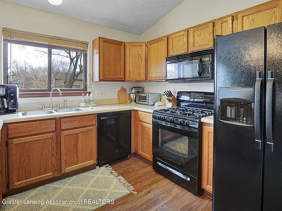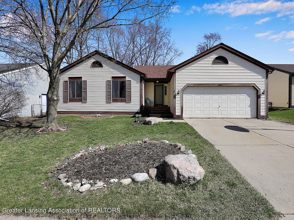 Welcome to 324 Bronco Way! This home is centrally located in Delta Township in a quiet subdivision that is still within walking distance to restaurants and coffee shops. It features an open living area with a cathedral ceiling. The nice sized kitchen and dining areas lead to a large deck. Three spacious bedrooms on the first floor and one more downstairs. The lower level features a large family room with wood burning fireplace, egress windows, and lots of storage. All Appliances stay. Central Air Conditioning. Attached two car garage. Call for your private showing today!