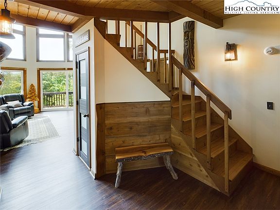 Mountain retreat near Banner Elk, NC FULLY FURNISHED! You are welcomed home by rock wall recessed lights & charming front entry! Guests enjoy the large gathering room w/wood-burning fireplace & expansive Window Wall & Sliding glass doors to offer easy deck access and Grandfather Mtn views! Well-appointed kitchen includes a spacious dining area. The main floor bedroom features access to deck & fire pit area for morning coffee or afternoon relaxing. Upstairs is a bedroom/loft w/full bath. The Lego room of the upper level is a special surprise! The lower level features bedroom w/mountain view, full bath, game room, workshop, and wine cellar.