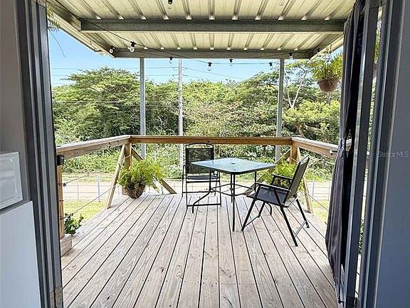 Tres Corazones is a unique, turnkey property located in Villa Borinquen on the island of Vieques, Puerto Rico. This thoughtfully designed compound includes two stylish sleeping structures, an additional full bath/laundry outbuilding, two outdoor soaking tubs, and on-grid utilities, offering flexibility for personal use, vacation rental income, or both. The primary structure is a Forest River Salem Platinum RV (26DBUD floorplan) permanently installed on a concrete pad and protected by a custom-built metal roof. Inside, the RV features a queen-size primary bedroom with built-in closets, a cozy lounge area with decorative fireplace and TV, a full kitchen, dining space, bunk beds, and a full bathroom. Large windows throughout bring in natural light and frame the surrounding tropical landscape. The RV is fully air-conditioned and comfortably sleeps up to six. Just a few steps away is the second structure—a professionally converted shipping container home with queen bed, full kitchen, full bathroom, and covered wooden deck. This unit also features an outdoor shower and satellite TV, making it ideal for guests or renters seeking privacy and comfort. The third structure on the property contains a second full bathroom and a laundry area with washer and dryer. A deep metal soaking tub adds charm to the space, while a second outdoor bathtub is tucked into a private corner of the property for evening stargazing or post-beach relaxation. The lot includes public water, electric service, and septic system. The landscaping offers a mix of shade and open sky, perfect for outdoor living and dining. The structures are well-maintained, and the layout is optimized for privacy, functionality, and island living. Tres Corazones has also proven itself as a strong income-generating short-term rental. It ranks in the Top 5% of most-loved homes on Airbnb in Vieques and has earned consistent Superhost recognition. It is being sold fully furnished and ready to operate as a turnkey investment. Located just a short drive from the ferry terminal, beaches, shops, and restaurants, this property puts you close to everything yet offers a sense of retreat. Enjoy easy access to Playa Caracas, Playa Negra, and the world-famous Bioluminescent Bay, as well as popular dining spots in Isabel Segunda and Monte Santo. If you're looking for a creative, flexible, income-ready property in Puerto Rico, Tres Corazones offers an ideal blend of style, functionality, and Caribbean charm.