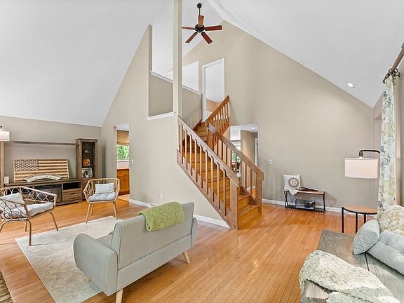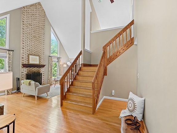 Why buy a townhouse when you can own the house with its own wrap around deck and huge fenced yard to enjoy without any association fees! Gorgeous property with lovingly maintained and landscaped exterior and a spacious deck to relax and enjoy the outdoors with privacy, surrounded by mature trees. Step into the living room with cathedral ceilings and a cozy fireplace. The dining room opens into the deck through a glass sliding door so you can delight in the beautiful view from the room. The basement room can be used as a third bedroom. Granite cabinets in the kitchen, plenty of storage space int he basement, and so much more! Don't miss this one!