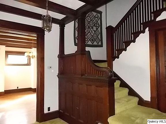 open front porch 554 SF, enclosed back porch, other room is downstairs study/den that could possibly be 4th bedroom w/closet, front entry enclosure with mail slot, beautiful woodwork throughout, walnut beams, open staircase, leaded glass windows, numerous built-ins & cabinets, laundry chute on both levels, wide hallways, built-in oven does not work, 200 ampere electrical service, complete roof replacement in 1998