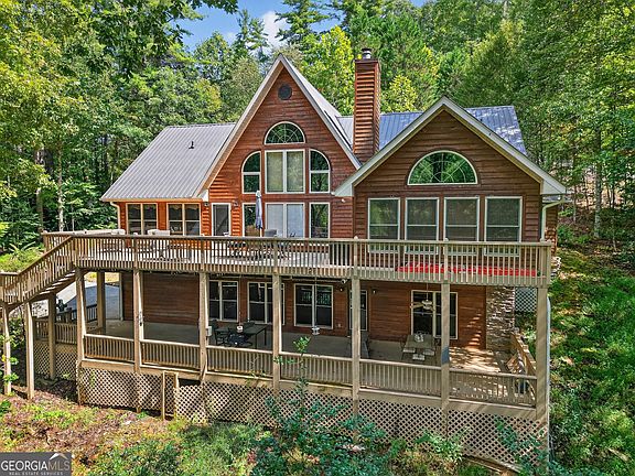 Situated on 1.56+/- acres along the picturesque Coopers Creek in Suches, GA, this 4,000 sq ft estate seamlessly blends luxury, comfort, and natural beauty. Whether you are looking for a permanent residence or a serene second home, this property offers an idyllic retreat. A whole-home generator ensures year-round comfort and peace of mind. Boasting five generously-sized bedrooms and three well-appointed bathrooms, this home provides ample space for both family living and entertaining. The open-concept main level features a grand living area and a gourmet kitchen, effortlessly flowing into a large deck that offers stunning water views-perfect for outdoor dining, relaxation, or simply enjoying nature. The terrace level includes an additional expansive deck and direct access to the creek, where the soothing sound of the creek adds a tranquil ambiance. The lower level is designed for multi-generational living, featuring a self-contained mother-in-law suite with its own kitchen, two bedrooms and a bathroom, providing privacy and comfort for extended family or guests. Coopers Creek is located in one of the most renowned trout fishing spots, feeding into the Toccoa River, offering excellent fishing opportunities. This prime location is perfect for outdoor enthusiasts and anglers alike. Constructed with low-maintenance cypress siding, naturally resistant to insects and requiring minimal upkeep, this home ensures long-lasting beauty and durability. Additional features include a two-car garage on the main level, a one-car garage on the basement level, and a 16x22 building on a concrete slab with a covered porch adjacent to the creek-ideal for use as a bunk house, mancave, workshop or additional storage. This estate offers privacy, natural beauty, and outdoor adventure. Do not miss out on this spectacular opportunity!