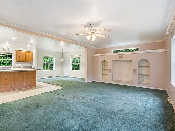 WELCOME to this 3 bedroom 2 bath RAISED RANCH on a PRIVATE 1.2 acre lot! This home features one-level living with a HUGE open living area, covered front porch, large basement space, 2-car garage, shed for additional storage! Island in kitchen is a bonus! Sold As-Is.