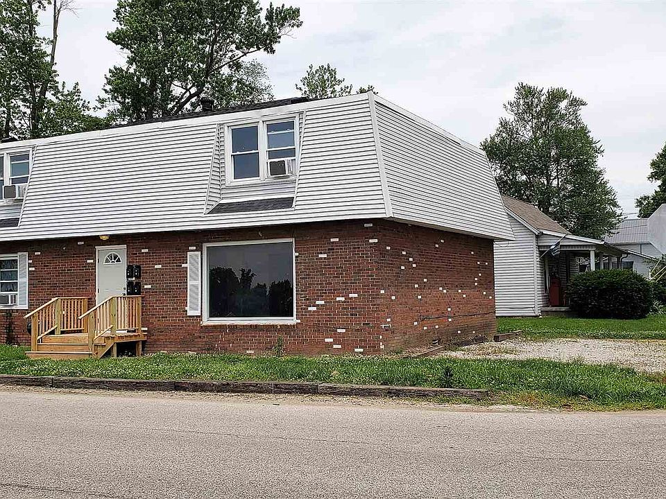 Investment property with FOUR units - 1 bedroom 1 bath units located on a corner lot directly across from the lake and water park. New roof and high efficiency HVAC. All new flooring in 3 of the units. One unit (bottom left) has a long time tenant and has not been updated. Details regarding updates as follows... #1A has all new SPC flooring and new kitchen cabinets/counters/sink setup, new tub surround & fixtures throughout; tub professional refinishing by ProBath solutions. #2A has all new SPC flooring in the kitchen/bath and new carpet in the living room and bedroom, plus the bathroom was partially remodeled with new toilet and vanity. #2B has same all new flooring like 2A and new front door/ frame. Building upgrades: Since April 2019, brand new roof, siding on the upper section, new 95% efficient furnace and 14SEER AC, 3.5 ton capacity 410A refrigerant type. The deck and steps out front are brand new, along with the entry door and entry flooring. The siding has been cleaned. Utilities: All utilities are paid for all units since there is only 1 electric and gas meter and 1 furnace/AC for the building. Seller does not know what average gas/electric bills are going to be with all the new equipment, but previous averages are as follows: Vectren Electric: $229.07 Boonville Gas: $109.06 Boonville Water: $237.36 - includes burst pipe over the winter in one unit, so this bill reflects this.