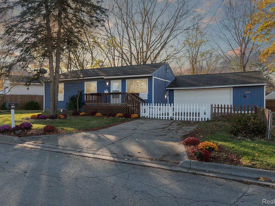 This adorable ranch located close to downtown historic village of Holly near parks and schools features 3 bedrooms, fresh paint throughout, appliances included, new carpet in bedrooms, all main floor living, large 2/3 car garage, fenced yard with mature trees and beautiful perennials that will surprise you in the spring, a nice front porch as well as large back deck complete this move in ready home.