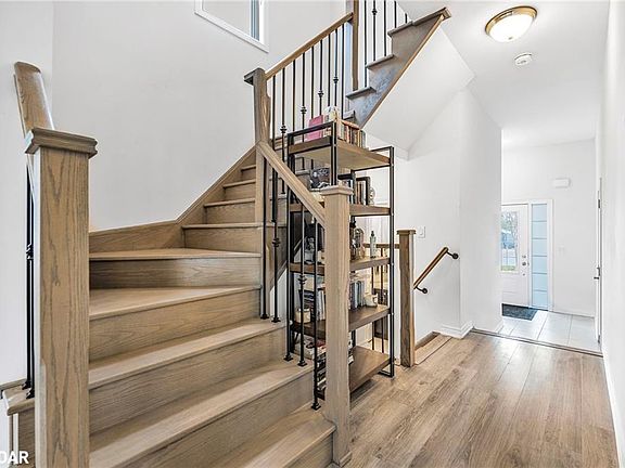 Welcome to Churchlea Mews, a charming townhome community nestled in the south ward of Orillia. This beautiful 2-storey end-unit townhouse offers a perfect blend of comfort and style, featuring three spacious bedrooms and three well-appointed bathrooms. The luxurious primary bedroom is a true retreat, complete with a 5-piece ensuite and a generous walk-in closet. The open-concept main floor is ideal for entertaining, with engineered hardwood flooring throughout, a cozy gas fireplace in the living room, and a striking upgraded wrought iron staircase. Convenience is key with a second-floor laundry room, making chores a breeze. The large, unfinished basement is a blank canvas, ready for you to create the perfect space for your needs—be it a home theatre, gym, or extra living area. The community is just minutes away from Orillia's stunning Tudhope Park, offering scenic walking trails and a beach for those who enjoy outdoor activities. This townhouse is a must-see for anyone seeking a move-in ready home in a desirable location. Don't miss your chance to make this property your own!