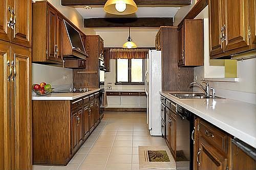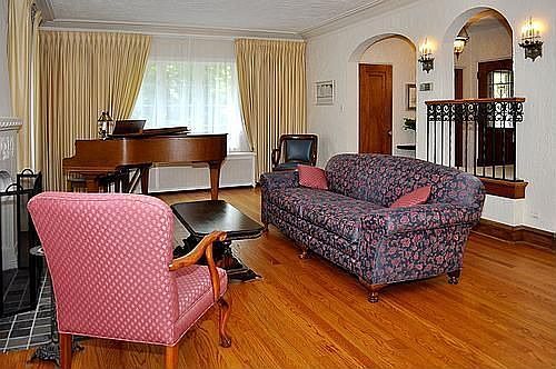 Spacious Tudor Spacious living room with WB fireplace, dining room with cove ceiling, textured walls, hardwood floors, newer appliances and Corian counter in kitchen, large family room with beamed ceiling overlooking beautiful yard and brick paver patio. 4 bedrooms all on the 2nd floor. New boiler(2011). Finished basement with new drywall in most, and painted floors. Walk to park, grade school and metra train.