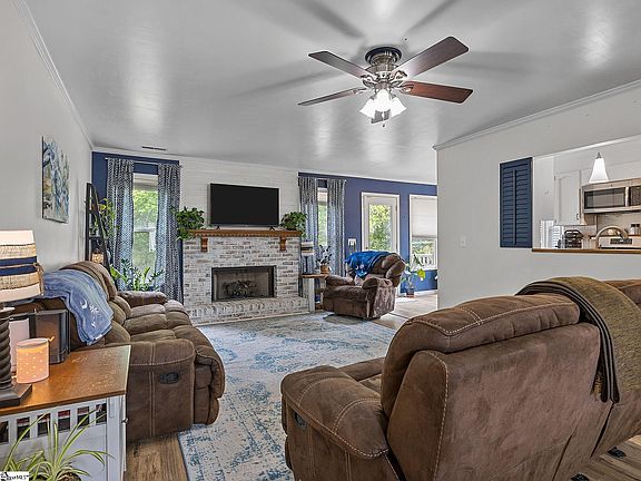 f you want to have everything close to everything... Then this is the house for you. This 4/2 sits on almost a full acre and less than a minute from Wade Hampton Blvd. You will fall in love with the gorgeous backyard, the firepit, the creek, and the two decks to enjoy the beautiful SC weather. Inside there is a wonderful galley kitchen with an opening to the living room where a gas fireplace is waiting for those cool fall and winter nights. All the appliances stay with the house including washer and dryer. The basement is a great place for the kids or a Man-cave along with an office area and more storage. Then the Garage offers a workshop and more storage while the Storage Bldg outside stays and the Kids playhouse.